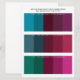 Three teal blue, emerald green with burgundy jewel tone wedding colour palettes for wedding dress, decor and invitations. Three separate colour palettes range from aqua teal blue and emerald green with burgundy garnet red pink fuchsia on one card that you can carry with you making it easy to compare colours and master colour flow and continuity when selecting your materials and supplies for your wedding.