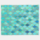 Aqua Teal Mint Gold Oriental Moroccan Tile pattern Fleece Blanket