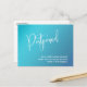 The background has been covered in a pretty, subtle gradient ombre featuring hues of turquoise, aqua and teal. Key phrases are rendered as elegant typography graphic accents using an elaborate, swirling script font.The header reads "Postponed" and accent words on the back are also coordinated. Use the template fields to easily add your own details and feel free to reword any of my placeholder type to suit your own specifications.