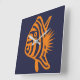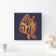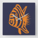 Tropical fish square wall clock. Large fish in orange on a navy blue background.