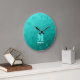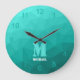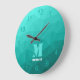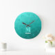 Aqua turquoise Geometric Mesh Pattern Monogram Large Clock