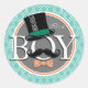Aqua Turquoise Retro Funny Boy Baby Shower Classic Round Sticker