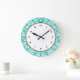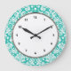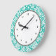 Aqua Turquoise Teal damask pattern Large Clock