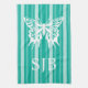 Aqua Victorian Stripe with Butterfly Monogram Tea Towel