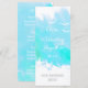 Modern abstract aqua blue watercolor splash with starfish and seagulls beach wedding menu card featuring a hand painted watercolor paint splash with texture in tones of aqua blue and turquoise, two starfish and seagulls in white and text in white and grey. This elegant and stylish casual wedding design is a completely customizable template perfect for your summer beach or destination wedding. Note that this is only an image of watercolor and not real texture.