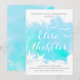 Modern abstract aqua blue watercolor splash with starfish and seagulls beach wedding bridal shower invitation featuring a hand painted watercolor paint splash with texture in tones of aqua blue and turquoise, two starfish and seagulls in white and text in white and grey. This elegant and stylish casual wedding design is a completely customisable template perfect for your summer beach or destination wedding. Note that this is only an image of watercolor and not real texture. For best results choose paper with texture.