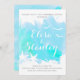 Modern abstract aqua blue watercolor splash with starfish and seagulls beach wedding rehearsal dinner invitation featuring a hand painted watercolor paint splash with texture in tones of aqua blue and turquoise, two starfish and seagulls in white and text in white and grey. This elegant and stylish casual wedding design is a completely customisable template perfect for your summer beach or destination wedding. Note that this is only an image of watercolor and not real texture. For best results choose paper with texture.