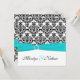 Aqua, White, and Black Damask Square Invite II