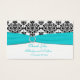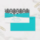This black and white damask Wedding Favour Thank You Tag has an aqua blue PRINTED ribbon and PRINTED diamond jewel brooch that would be perfect for an aqua and black themed wedding. **NOTE, if you change the size of the card, or if you change the fonts, or the size of the font, some of the design and/or text may get cut-off. Everything will print as you see it on your monitor. I will not see changes you make, and Zazzle will NOT correct anything (typos, mis-alignment etc.). The text is all customisable. If you need help with this product, please email me BEFORE you place your order. If you require any other matching items, please email your request to niteowlstudio@gmail.com