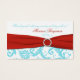 This aqua blue and white floral damask thank you tag has a red PRINTED ribbon and a PRINTED jewel buckle on it that matches the wedding invitation shown below. **NOTE, if you change the size of the card, or if you change the fonts, or the size of the font, some of the design and/or text may get cut-off. Everything will print as you see it on your monitor. I will not see changes you make, and Zazzle will NOT correct anything (typos, mis-alignment etc.). The text is all customisable. If you need help with this product, please email me BEFORE you place your order. If you require any other matching items, please email your request to niteowlstudio@gmail.com