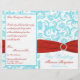 Aqua, White, and Red Damask Wedding Program