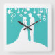 Aqua & White Bride and Groom Wedding Silhouettes Square Wall Clock