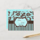 This aqua blue, brown, and white stripes with floral damask save the date postcard matches the wedding invitation shown below. If you require any additional matching items, please email your request to niteowlstudio@gmail.com.