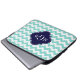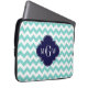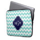 Aqua White Chevron Navy Blue Quatrefoil 3 Monogram Laptop Sleeve