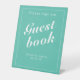 Aqua & White Modern Minimalist Guestbook Pedestal Sign