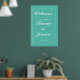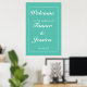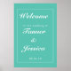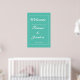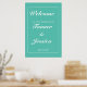 Pretty, modern, minimalist and trendy wedding poster sign features an aqua blue background (Pantone's 2022 colour pick "Cascade") with white customisable text blocks in modern fonts