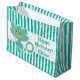 Aqua-White Stripe•Cat•Custom Large Gift Bag