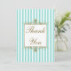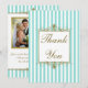 Aqua, White Stripes Gold Scrolls PHOTO Thank You Card