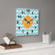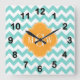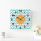 Aqua Wht Chevron Cantaloupe Quatrefoil 3 Monogram Square Wall Clock
