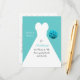 Looking for words of wisdom post cards for the bride to be? Look no farther. This lovely design in aqua features a white bridal gown with bridal roses to the right on an aqua background. The back of the postcard is reserved for your words of wisdom for the bride. You can personalise the front with the name of the bride. Copyright henishouseofpaper