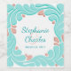 Pretty full size wedding wine labels, done in white, with an aquamarine and coral decorative swirl around a circular text area. Personalise the text for your special day.