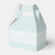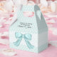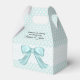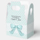 Pretty special occasion favour gift box done in a aquamarine with white polka dots. Graphics of a lacy white ribbon, runs around the middle of the box and an aquamarine satin looking bow, decorates the front. Personalise the black text for your occasion. Great as wedding favour boxes, birthdays and showers.