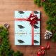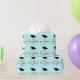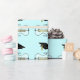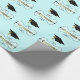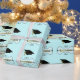 Lovely graduation wrapping paper done in aquamarine, with graphics of black and gold mortarboard caps and black decorative frame with golden text reading Congratulations. Stylish way to wrap a present to your favourite graduate.