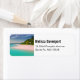 Address labels with a beautiful photograph. A scenic tropical beach with aquamarine water and a white sandy beach with a lush forest in the back.