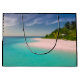 Gift bag with a beautiful photograph. A scenic tropical beach with aquamarine water and a white sandy beach with a lush forest in the back.
