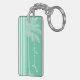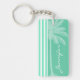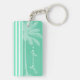 Aquamarine Seafoam Green Stripes; Retro Palm Tree Key Ring