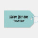 A pale aqua gift tag with a textured effect. The text is customisable for the customer to change the occasion or add a name if necessary.
