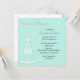 Stylish aquamarine and white bridal shower invitation done in a square shaped invitation. Graphics of a embossed looking tiered wedding cake decorates the bottom left corner. Text in black and white is fully customisable to your event needs.