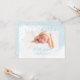 PixDezines Thank you and Birth Announcement for a baby boy with powder blue watercolor background and faux rose gold confetti, accented with butterflies and faux gold pram..