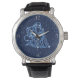 Watch featuring the zodiac symbol for Aquarius in soft silver blue, overlaid with the stars of the constellation, against a dark blue, starry sky background