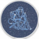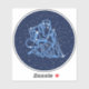 Sticker featuring the symbol for Aquarius in soft silver blue, overlaid with the stars of the constellation, against a starry sky background graded from deep midnight blue to black