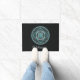 This mandala was designed for the zodiac sign, Aquarius, depicting a turquoise stone in the centre surrounded by elements representing the sign, such as the symbol for the sign, the constellation, and the alchemical symbol for Air, as well as filigree vines and weaves wrapping it all into a solid image in shades of turquoise, silver, and black. Customise the text on this doormat with your own preferred greeting or remove it entirely to make a unique decoration for your entryway.