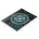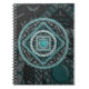 This Aquarius themed mandala features a turquoise stone surrounded by the symbol for the sign, the constellation, and the alchemical symbol for Air among filigree and weaves.