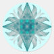 This sticker is a fractal design rendered in apophysis. The aqua colour gives it the name Aquarius Star. This four pointed star has several curling flames between the for points of the star and the centre is geometric with eight light and bright coloured circles that create a square. Fine line detail this is a beautiful example of fractal symmetry.