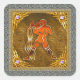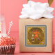 This magnificent symbol is depicted with carved gold and embossed jewelled red lacquer against a leather background. The four suns rendered in gold represent the totality of the seasons. The centre of each sun features the embedded Aquarius birthstone opal.