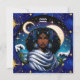 A fun horoscope Aquarius blank card with an African-American woman with a stars and moon celestial background.