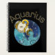 This planner features an Aquarius Zodiac Sign illustration inside the blue circle with the word Aquarius over the top in a Afrah print font with navy blue letters gold outline in this Zodiac Horoscope planner on a black background. The planner's pages of are printed on high-quality paper with wire binding and grid transparency with an Aquarius Symbol printed accross the back. This planner includes a monthly overview and weekly planning space made with 60 lbs. paper. This planner will make the perfect gift for yourself or others.