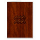 An Aquarius zodiac sign on a mahogany wood grain style design texture print background. A modern classy racy design for a great custom birthday gift idea.