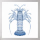 A drawing of a lobster from the 1800's transformed into the famous style of Delftware.