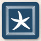 Aquatic themed design with starfish decoration in striped squares on blue background