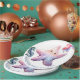 A smiling starfish sets the undersea tone with a fish and seahorse. Your event details around the edge of the plate.