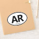 AR state abbreviation vinyl sticker for Arkansas. Create your own personalised stickers for vehicle, luggage, bike, water bottles, laptop and other products. Unique contour-cut stickers. Available in small, medium and large sizes. Add your own text. Great for international and national travel, road trips, vacations, sports events and more. Classic European automotive style white oval shape sticker sign.