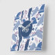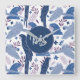 Ara Parrot Blue Tropical Leave Pattern Monogram Square Wall Clock