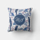 Ara Parrot Blue Tropical Pattern Monogram Throw Pillow. Ara pattern with tropical leaves in blue and pink colours. Add your initials.
