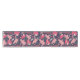 Ara Parrot Red Pink Drawing Tropical Leave Pattern Table Runner. Ara pattern on dark blue background with tropical leaves in green, red and beige colours.