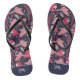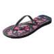 Ara Parrot Tropical Pattern Drawing Monogram Name Flip Flops. Ara pattern on dark blue background with tropical leaves in green, red and beige colours with a name in pink script. Great for parrot lovers and parrot owners. Add your name or monogram.